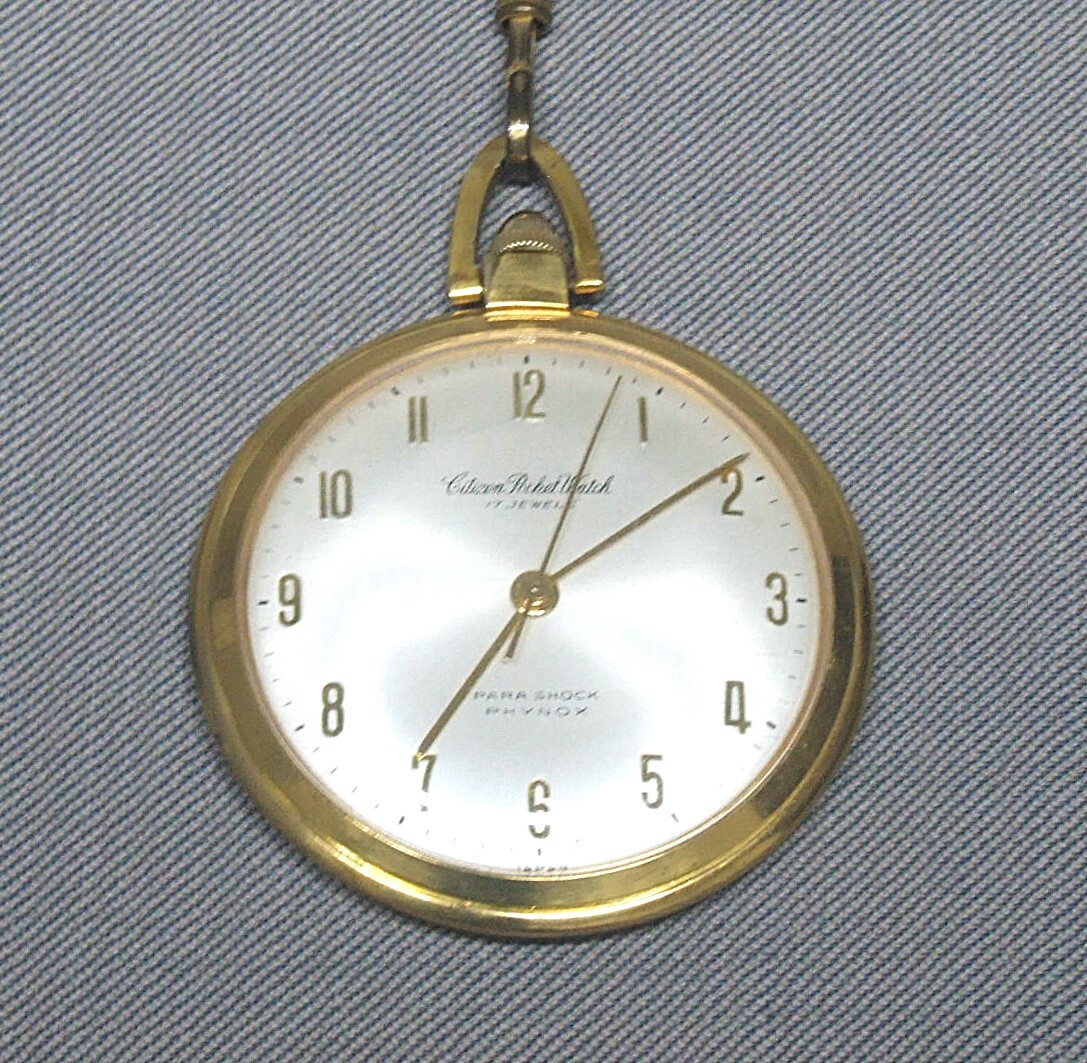 > ◆ 手巻き懐中時計!■ ポケットウォッチ ◆ CITIZEN シチズン ★ 分解掃除(調整済み)◆ パラショック ★ 17石 ★ホワイト文字盤 ★