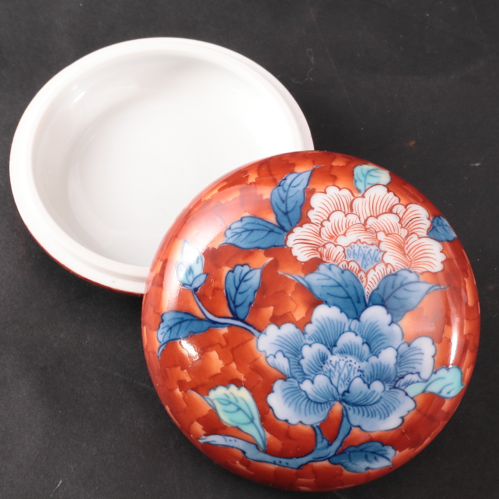 > ◆◇鍋島焼 桃山窯 伝統工芸士 青木桃山 色絵牡丹図香合 香道具 茶道具◇◆