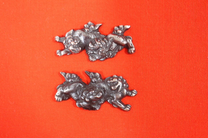 - 目貫 『獅子 二疋』[1組(2個)] 合金 現代 装飾金具 柄 拵え 刀 刀剣 日本刀 ☆新品