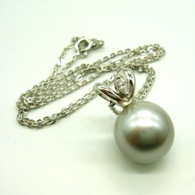 - PN586:K18WG 黒蝶真珠 ダイヤ ペンダント ネックレス