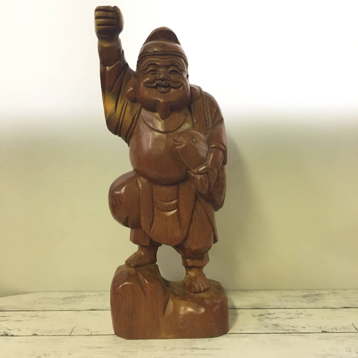 - 51㎝ 木彫り彫刻 七福神 恵比寿様 えびす様 商売繁盛 豊漁の神 開運 縁起物 東洋彫刻 インテリア 置き物 Z50475