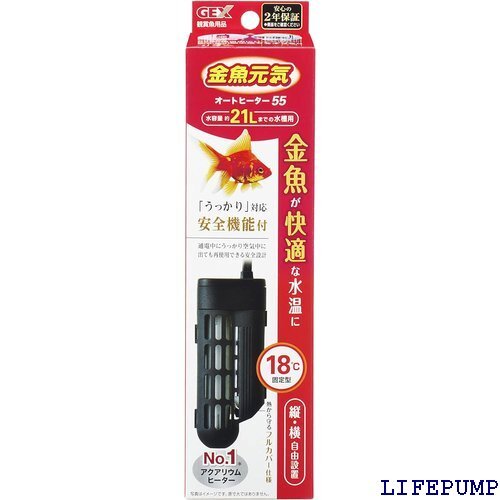 - GEX 金魚元気 オートヒーター 55 18℃自動保温 安全機能付 SP規格適合 約21L以下の水槽用 55W 8659