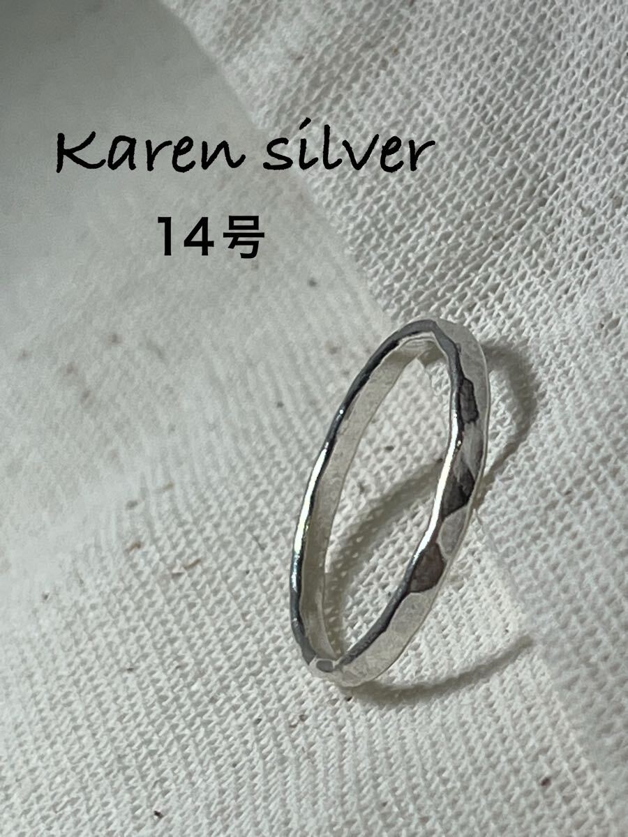 - R6911ミくs1 カレンシルバーリング槌目KAREN叩き打ち平打ちハンドメイド高純度銀指輪14号く