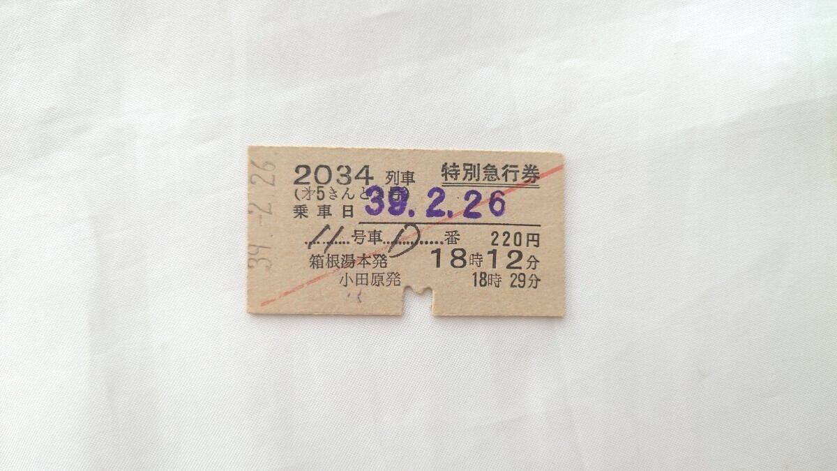 - △小田急△箱根湯本発 2034列車(第5きんとき)特別急行券△A型硬券昭和39年