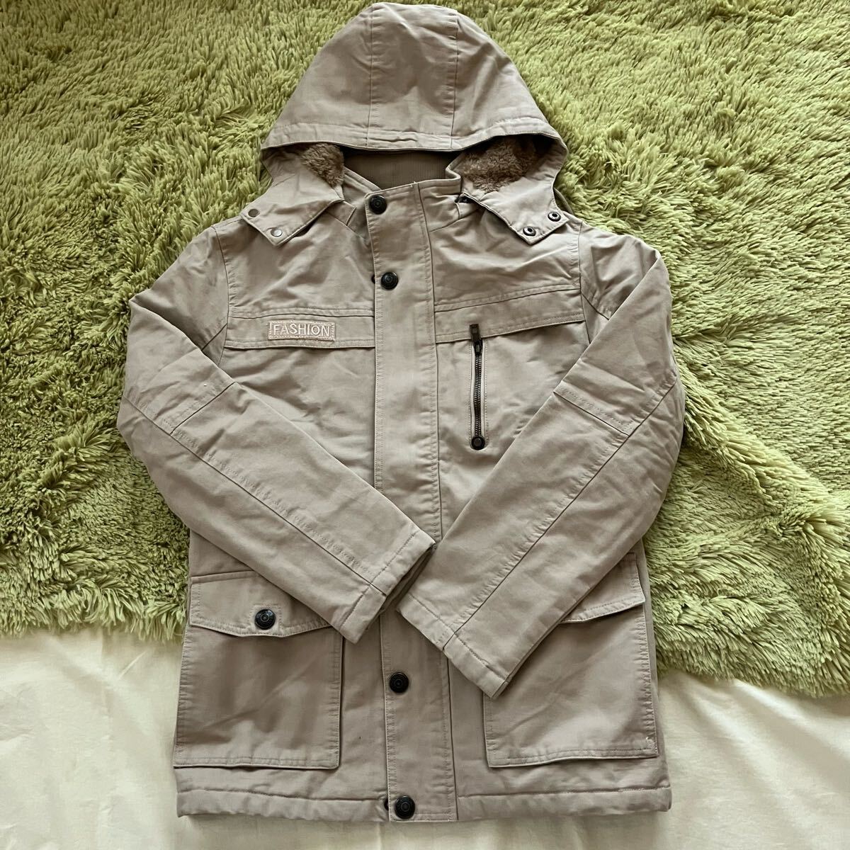 - メンズ ジャケット コート M ベージュ 裏ボア ジャンパー ブルゾン ハーフ丈 フード着脱可 防寒 防風 厚手 新品未使用