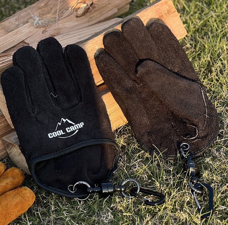 - 新品黒 超高品質 クイック 焚き火手袋 2点セット グローブ 本革製 イエロー 強力磁石ボタン ア ウトドア キャンプお色選択可