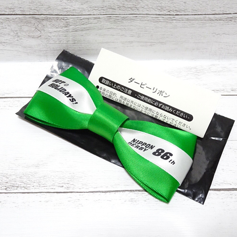 - 2388 送料無料 JRA 日本ダービー 86th ダービーリボン 6枠 緑 約11.5×5cm / グリーン クリップ付き 非売品 競馬