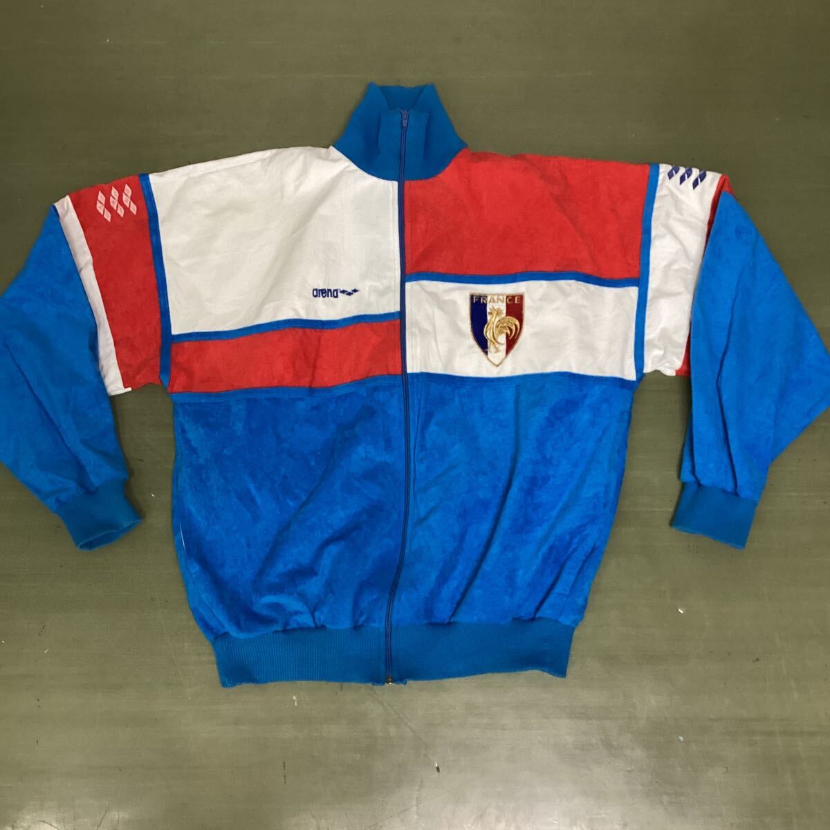 - 80s arena アリーナ ベロアジャージ トラックジャケット フランス製 VENTEX社 PRODUCTION VENTEX フランス代表 サイズL