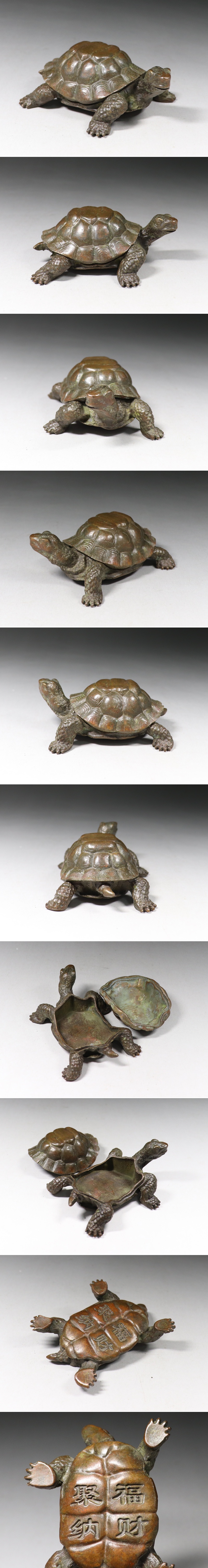 - ▲古銅・聚福納財・亀・カメ・置物・香炉・細密細工・煎茶飾り・香道具・盆景▲se188h