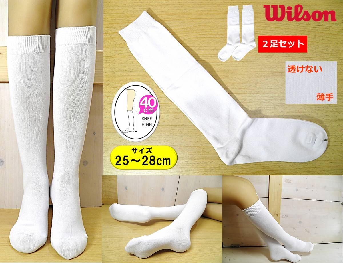 - 【レッグウェア★未使用品】イモト製◆Wilson◆なめらか 平編み 白 ハイソックス◆2足◆40cm丈◆25-28cm◆すけない薄手◆スポーツ◆