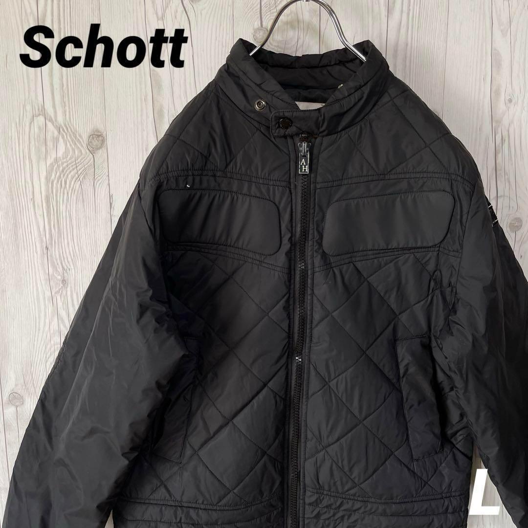 > 1980年代タグ Schottショート ナイロンライダースジャケット ブラック黒 メンズLサイズ バイカータグ ブルゾンジャンバー 古着