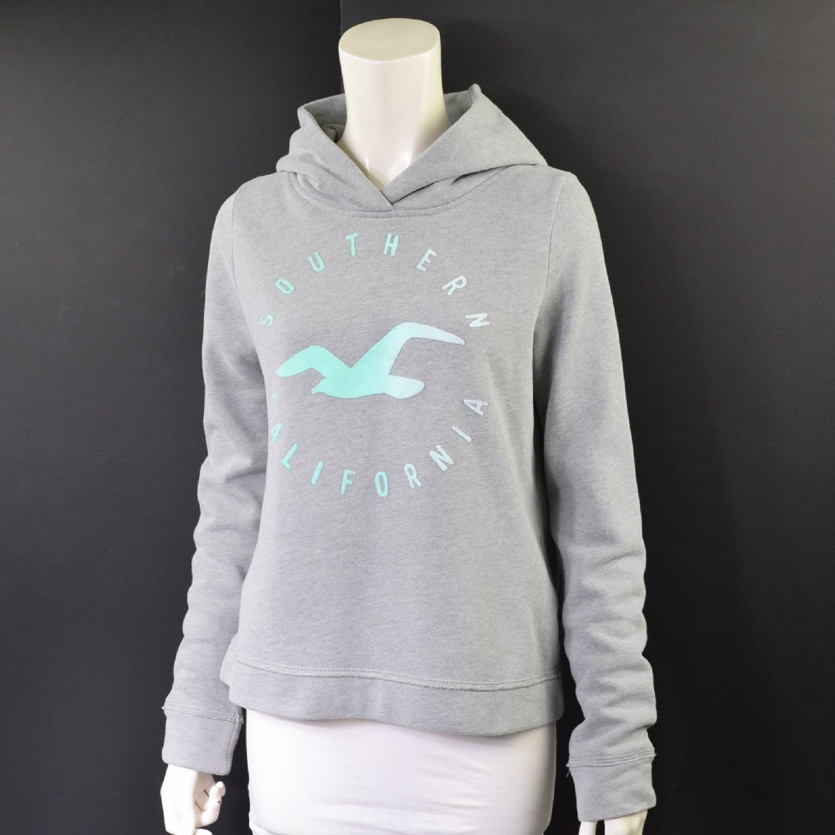 - 5000-KA00095★ホリスター Hollister★ロゴプリント 裏起毛フード付きトレーナー/パーカー M グレー