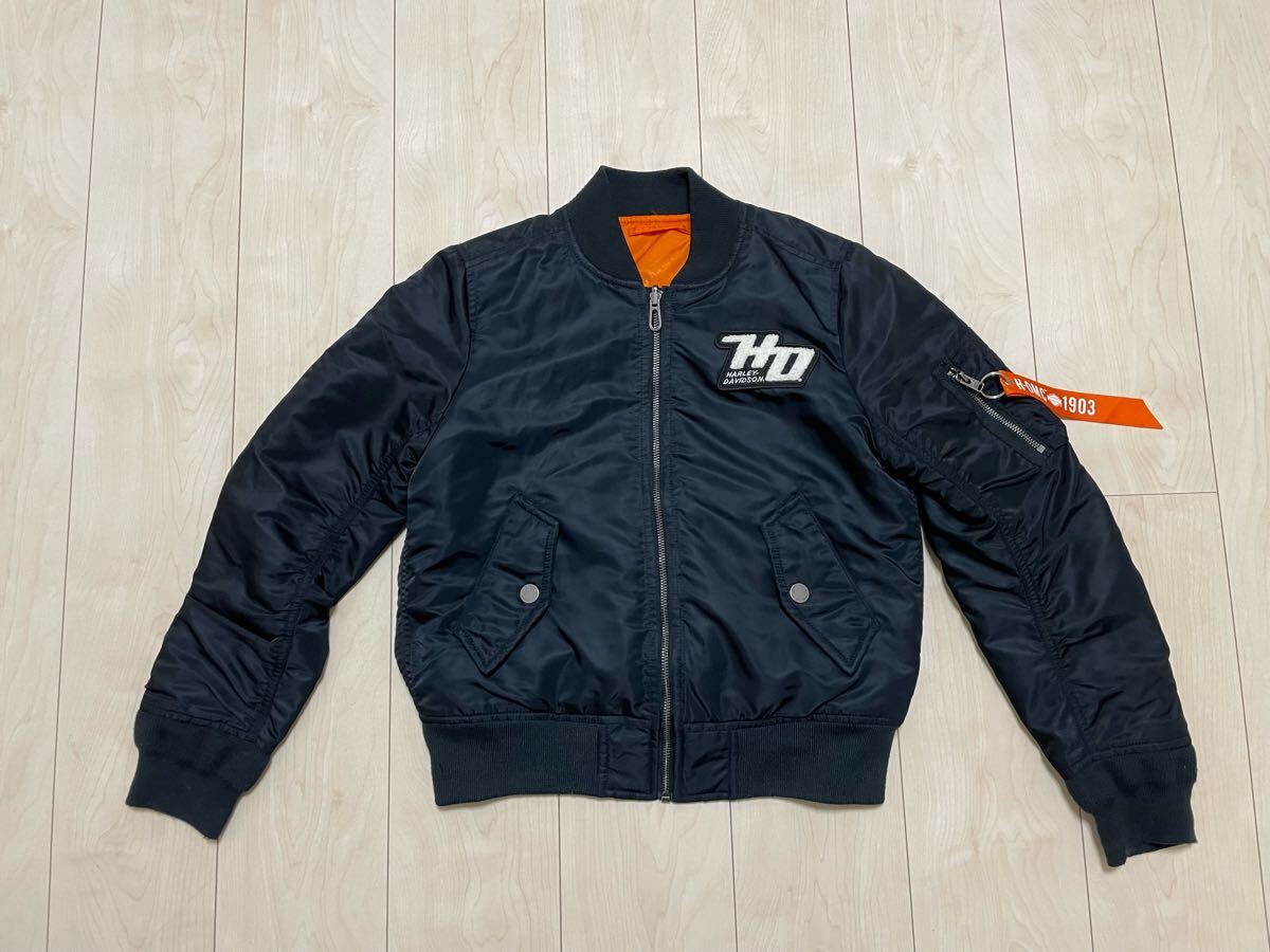 > 美品 Harley-Davidson HD ハーレー 防寒ジャケット MA-1 2WAY 両面使える防風 保温 アウター ブルゾン フライトジャケット ワッペン