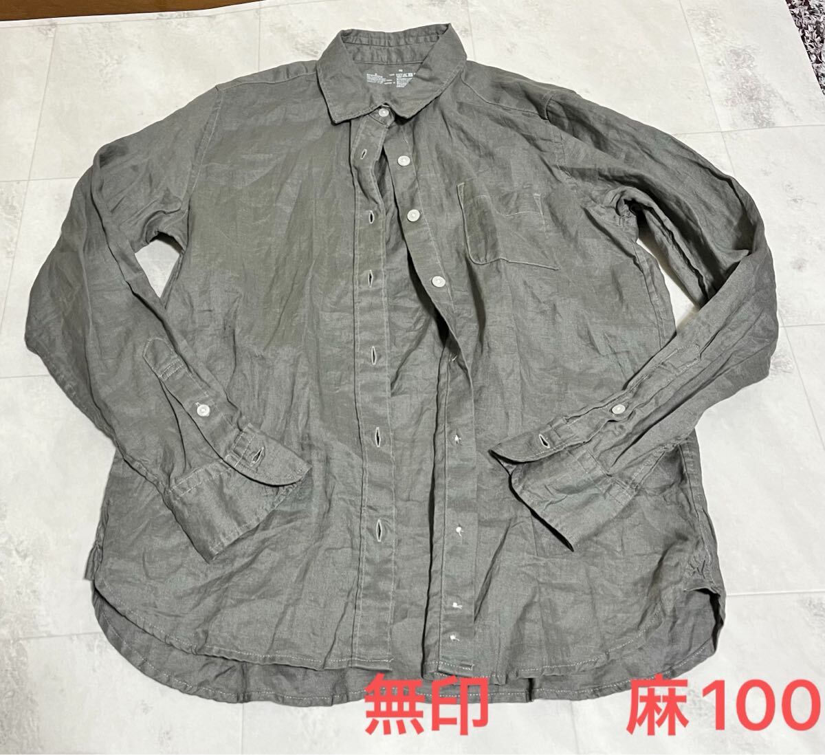 - 良品計画 無印良品 MUJI リネン麻100% 長袖シャツ Mサイズ グレー系