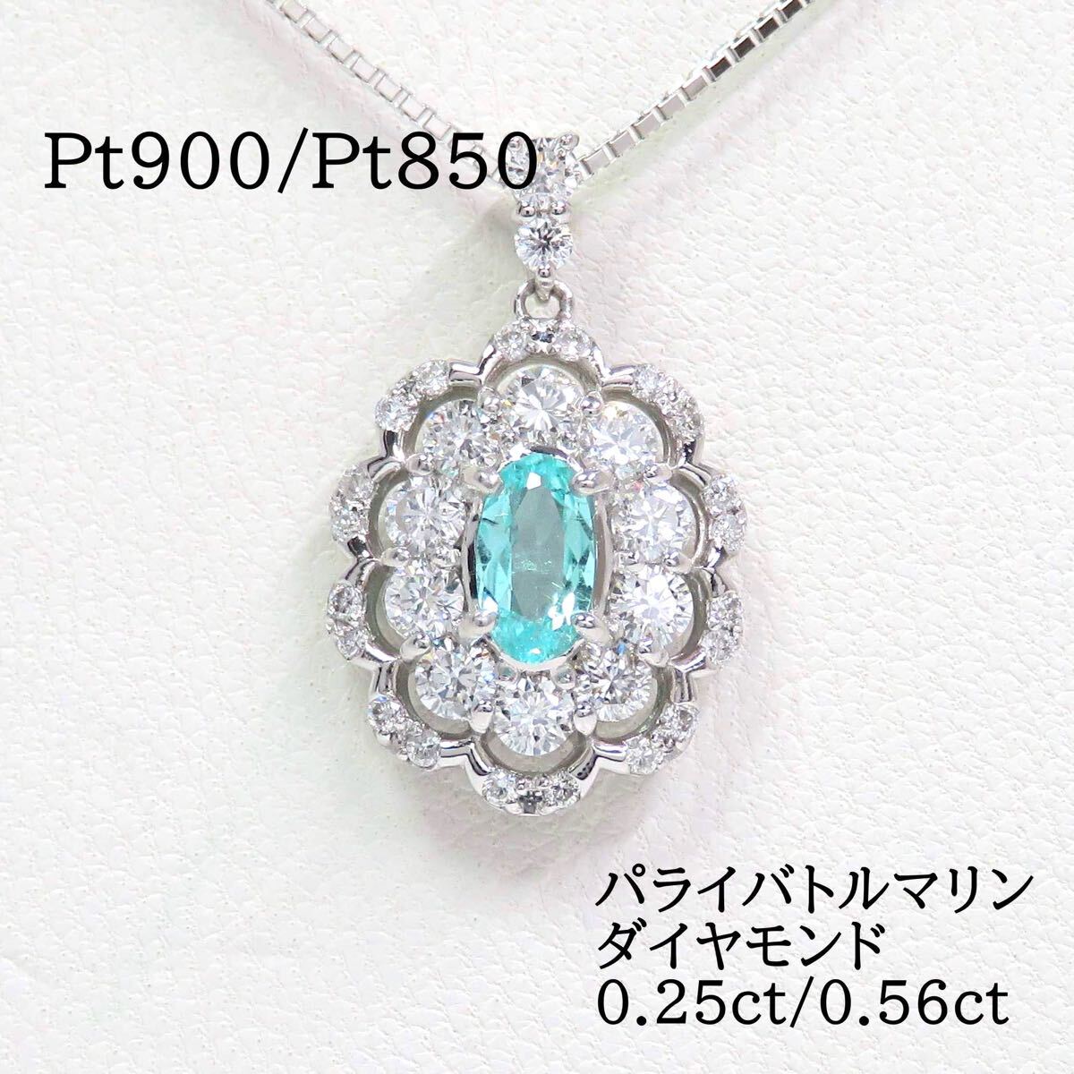 - Pt900 Pt850 パライバトルマリン0.25ct ダイヤモンド0.56ct ネックレス プラチナ