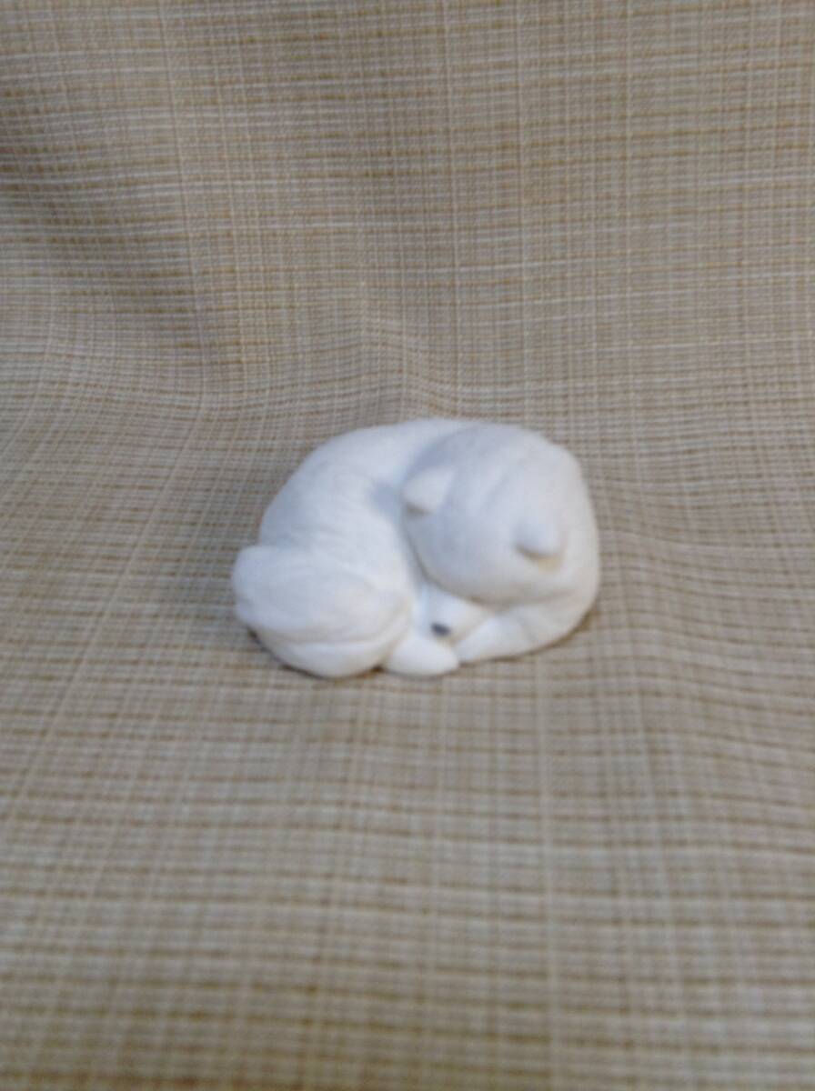 ミニフィギュア ポメラニアン? もふもふ まるまる 白(ホワイト) 犬,いぬ マスコット まんまる 寝る,ねる,眠る,ねむる,おやすみ