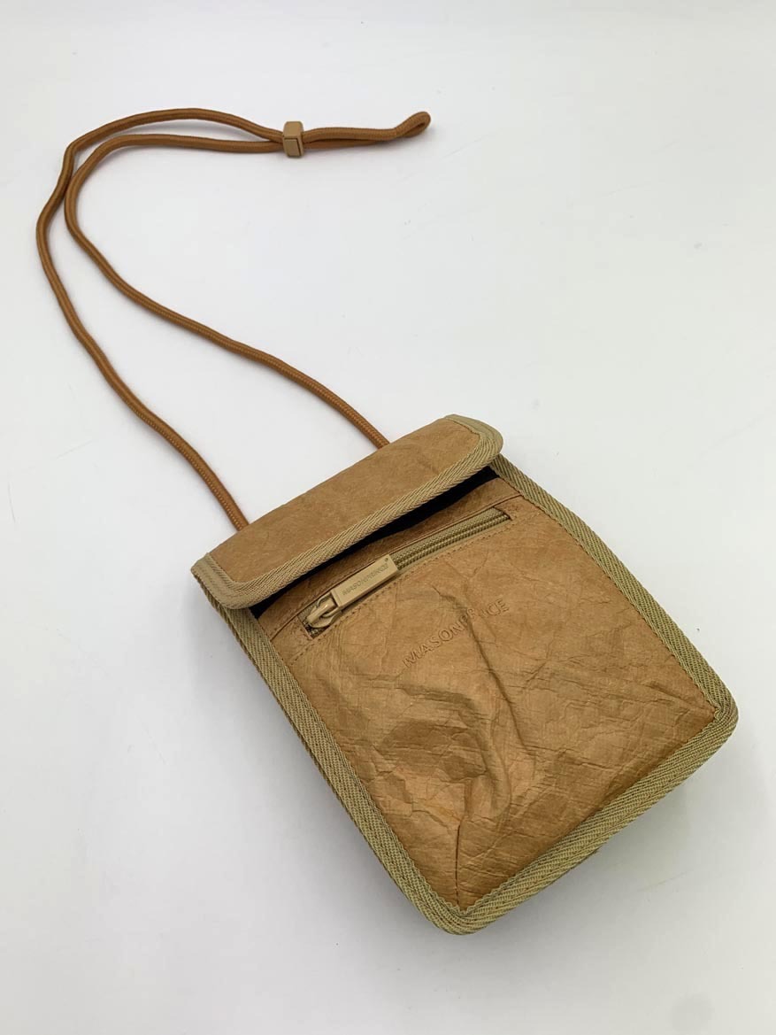 > ゆうパケットOK MASONPRINCE メイソンプリンス ミニポーチ PUレザー クラフト ブランドロゴ ユニセックス ショルダー バッグ ベージュ ■■