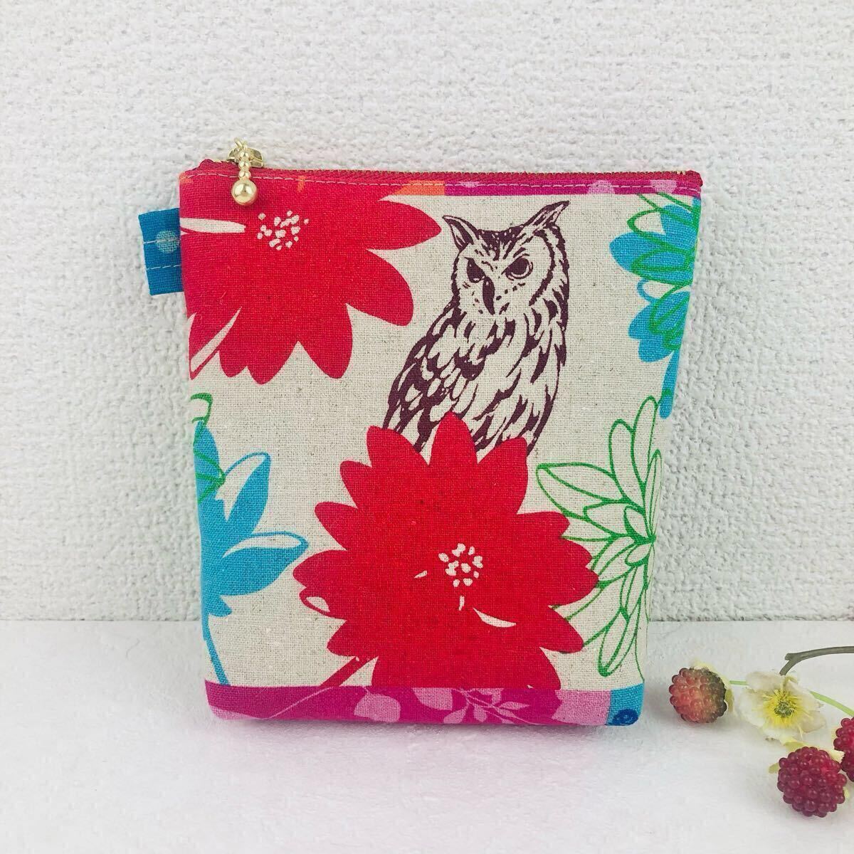 - エチノ ふくろう ファスナーポーチ タバコポーチ アイコスポーチ ハンドメイド echino コスメポーチ サニタリーポーチ に 小鳥