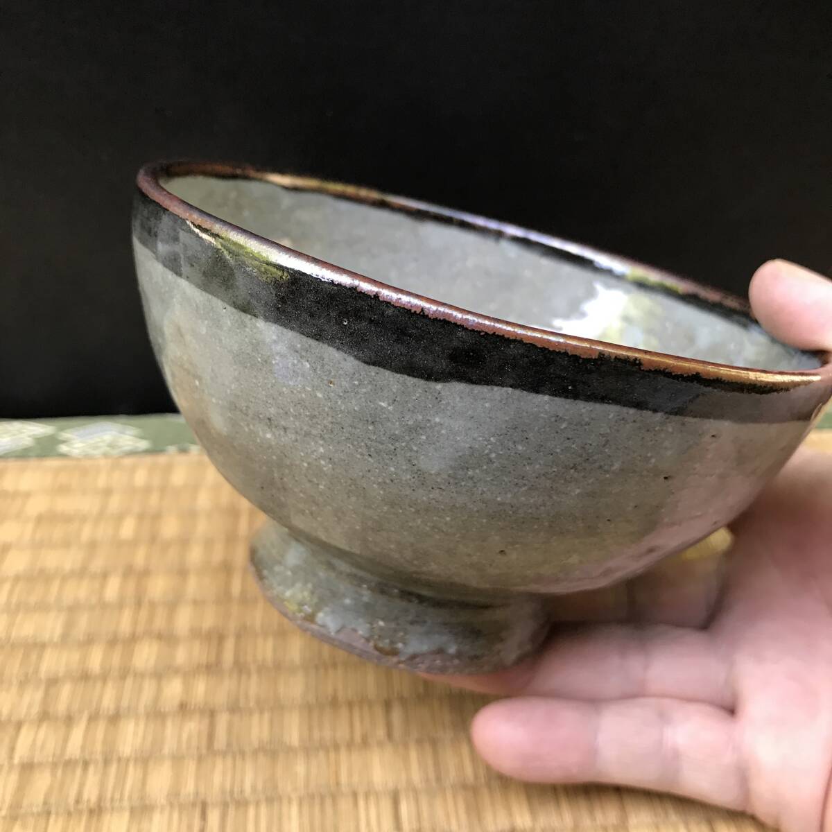 - 唐津風皮鯨のお茶碗、小山冨士夫(古)小山古銘印?茶器 茶入 茶わん 小鉢 杯 珍味入れ(R70424_A)