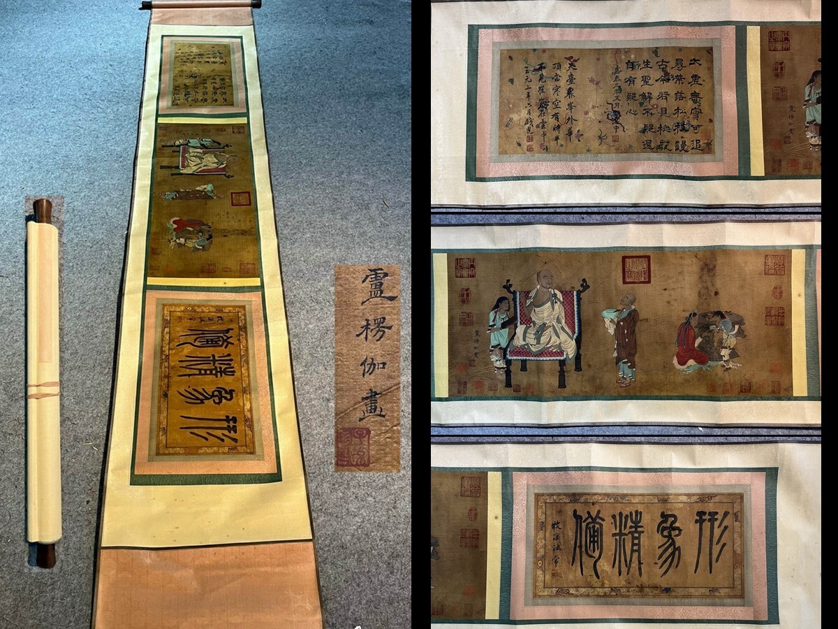 - 中国書画「唐 盧楞伽 人物図長巻」肉筆紙本 掛け軸 墨寶妙品 書画横軸 巻き物 古美術 旧蔵出