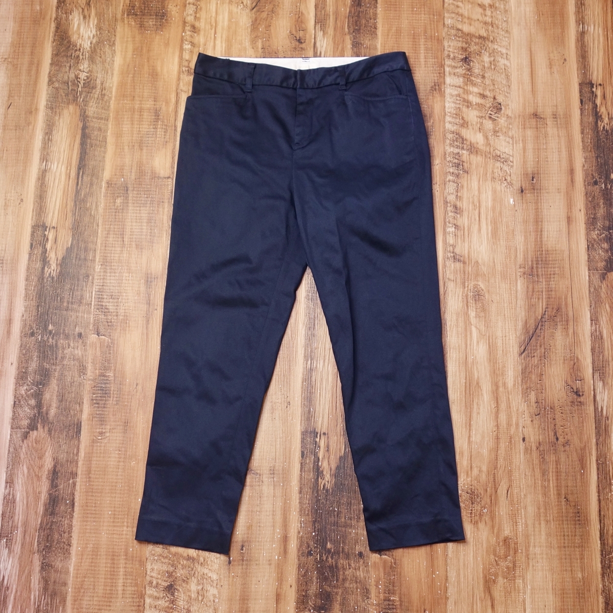 - 美品 ViS コットンストレッチテーパードパンツ レディース クロップド アンクル 綿混 Lサイズ 濃紺 NF6