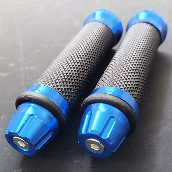 > YBR125 TW200E TW225E SRV250 SR400 SRX250 SRX400 ルネッサ R1Z RZ250R 汎用 グリップ アルミ ラバー ハンドル バーエンド 青