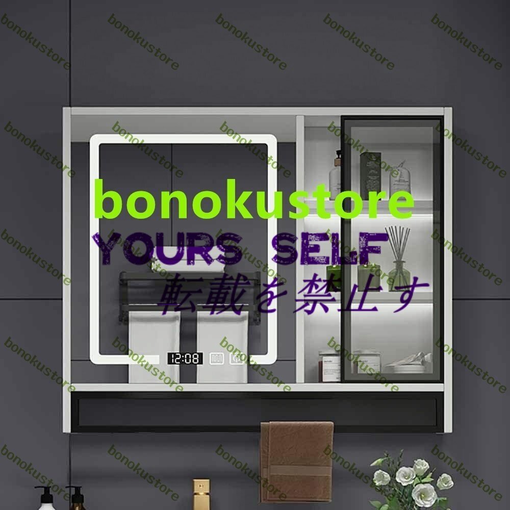 - バスルームミラー キャビネット フレーム壁掛けミラー ミラー付きバスルーム収納キャビネット デフォッガー付き LEDライト付き 80cm 白