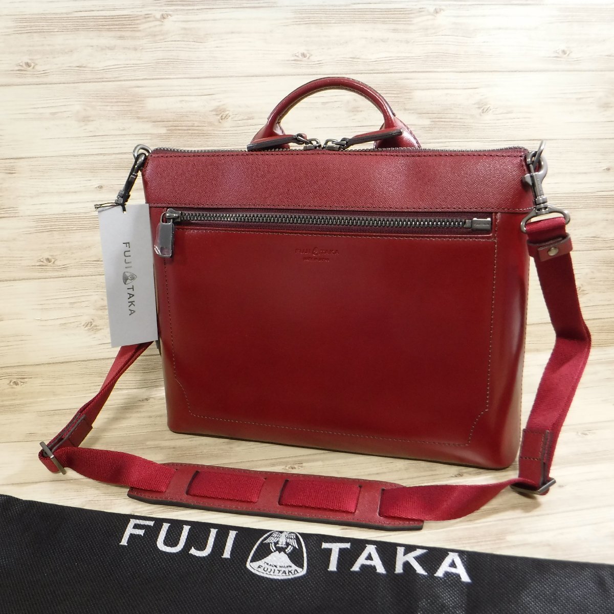 > BB50 フジタカ 定価4万700円 新品 2WAY レザー ショルダーバッグ 牛革 ビジネスバッグ B5 エキストラ 659123 FUJITAKA ボルドー ワイン