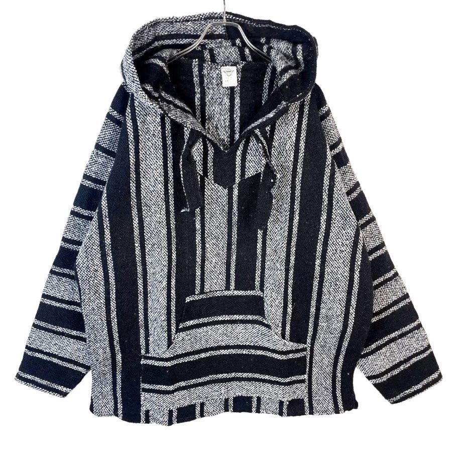 > メキシコ製メキシカーノMexicanoメキシカンパーカーBAJAバハフーディメキパカ白ホワイト黒ブラックストライプヒッピーサーフカルチャ50206