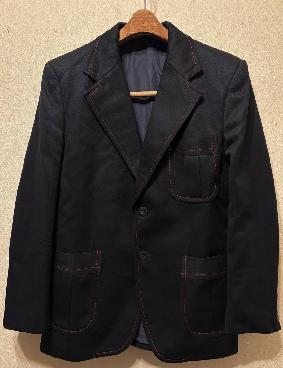 > 配色ステッチ赤70sビンテージkentishテーラード2BジャケットL黒ブラック良質ウィップコード希少デザイン70年代1970sスクール稀ノーフォーク