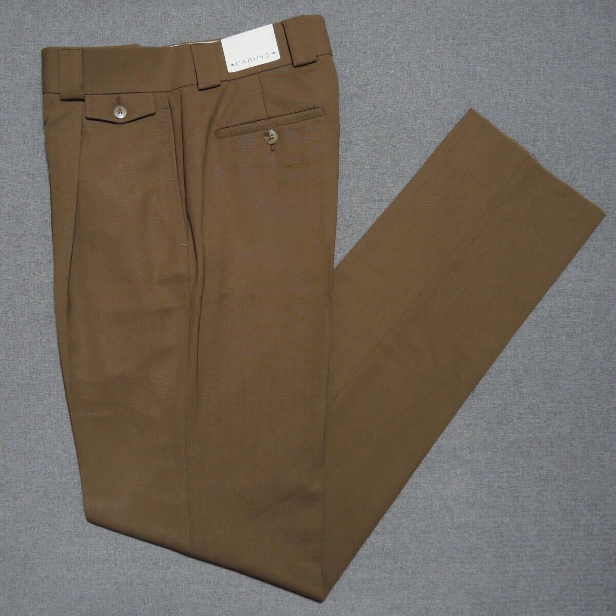 > CARUSO スラックス パンツ 44 カルーゾ 最高級ハンドメイド HOUDINI トロピカルウール生地 ブラウン 定価5万 イタリア