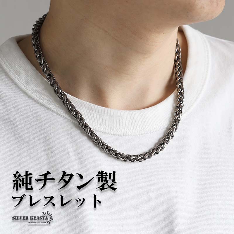 - (60cm) チタン ウィートチェーンネックレス 高密度 チタンネックレス 幅7mm シルバー 燻し風 男性 金属アレルギー対応
