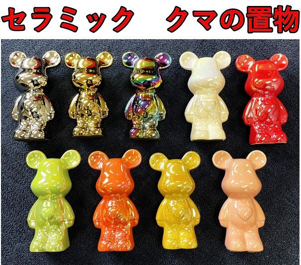 > 【アウトレット】訳アリ セラミック クマ くま 置物 インテリア 店舗 おしゃれ かわいい ラブリー 家 3体セット オフィス 9色 ②