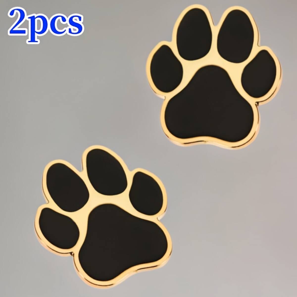 - 2個セット 金属 ステッカー 猫の足跡 アニマル 車 3D 立体 ブラック ゴールド 貼り付け シール 6.5cm 動物の足跡 ネコ 犬 装飾 ロゴ t6248
