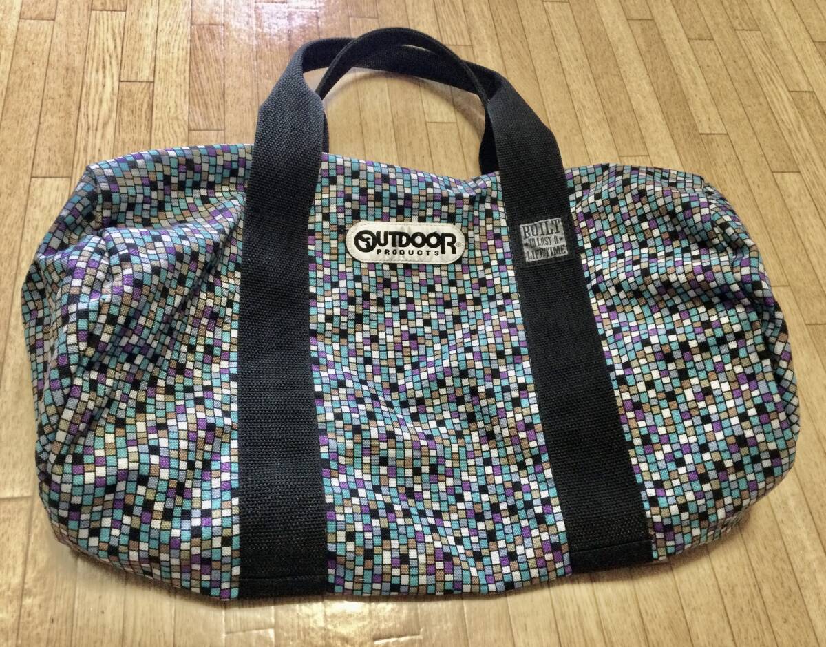 - OUTDOOR PRODUCTS アウトドアプロダクツ ドラムバッグ 青系モザイク柄 くすんだ紫 USED