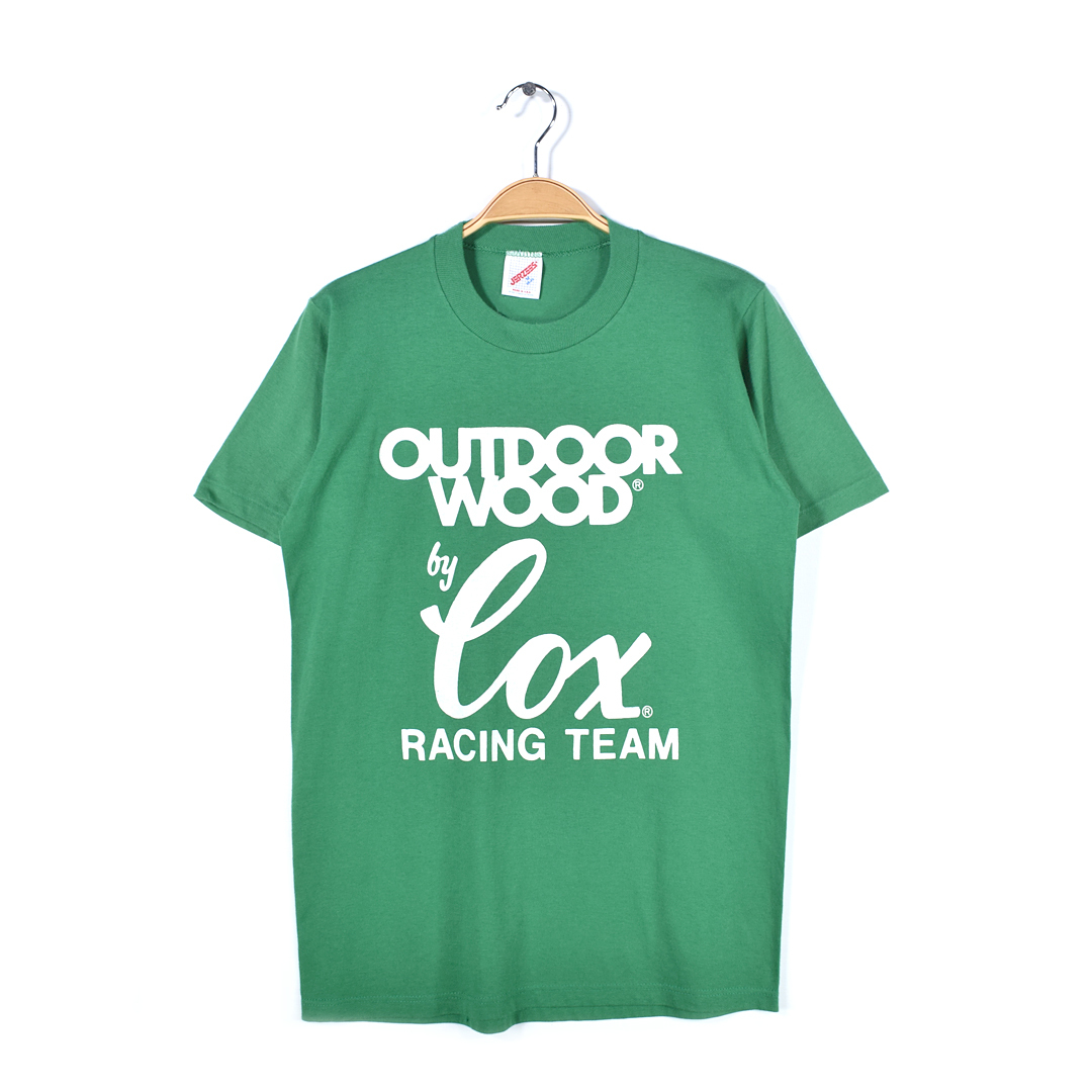 - 【送料無料】90s OUTDOOR WOOD BY COX USA製 ヴィンテージTシャツ 企業系 グリーン 袖シングルステッチ メンズM 古着 @BZ0384