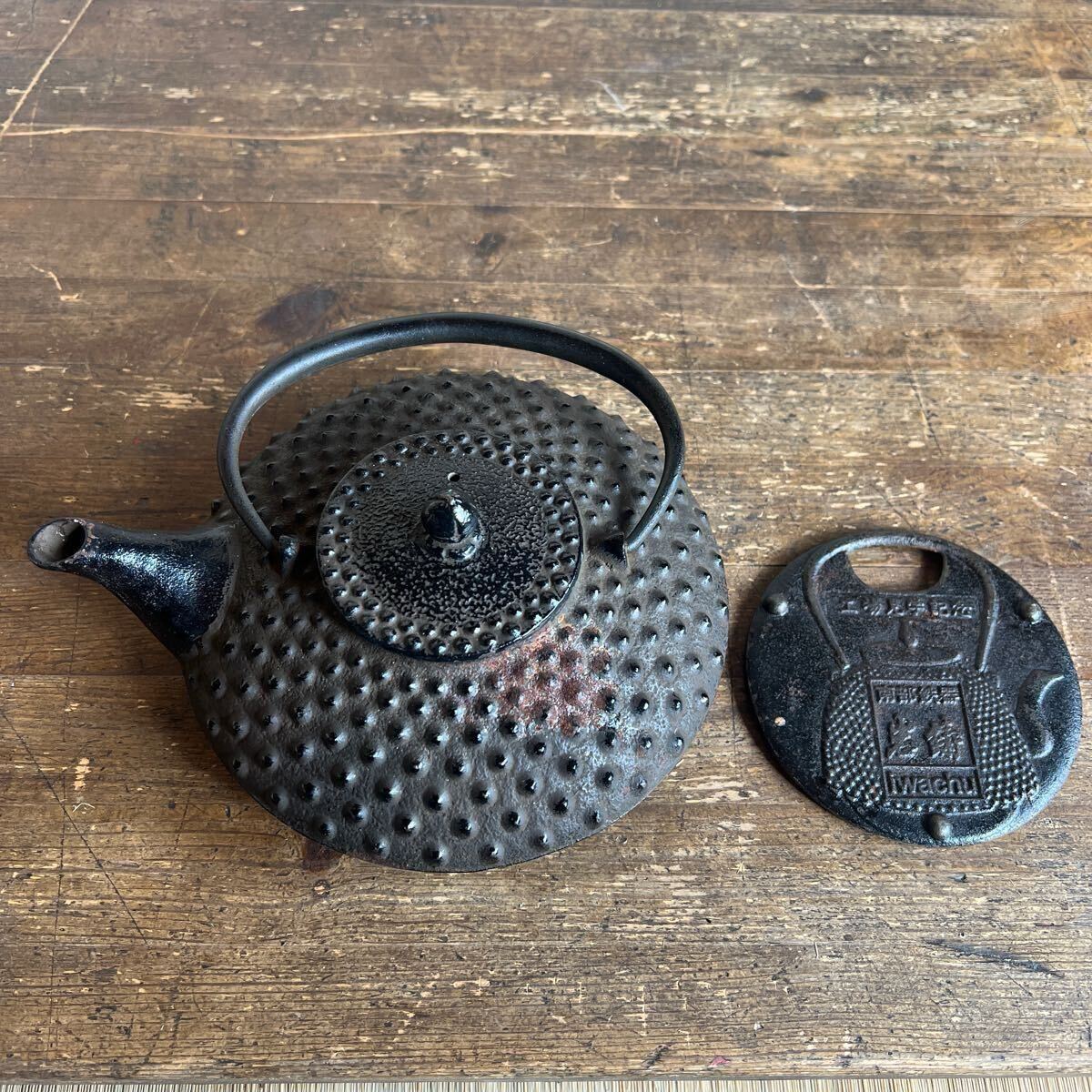 - T5/4-1 イワチュウ 南部鉄器 南部鉄瓶 鉄瓶 茶道具 鉄器 急須 茶器 鉄急須 鉄分補給 工場見学記念の鉄瓶台セット!