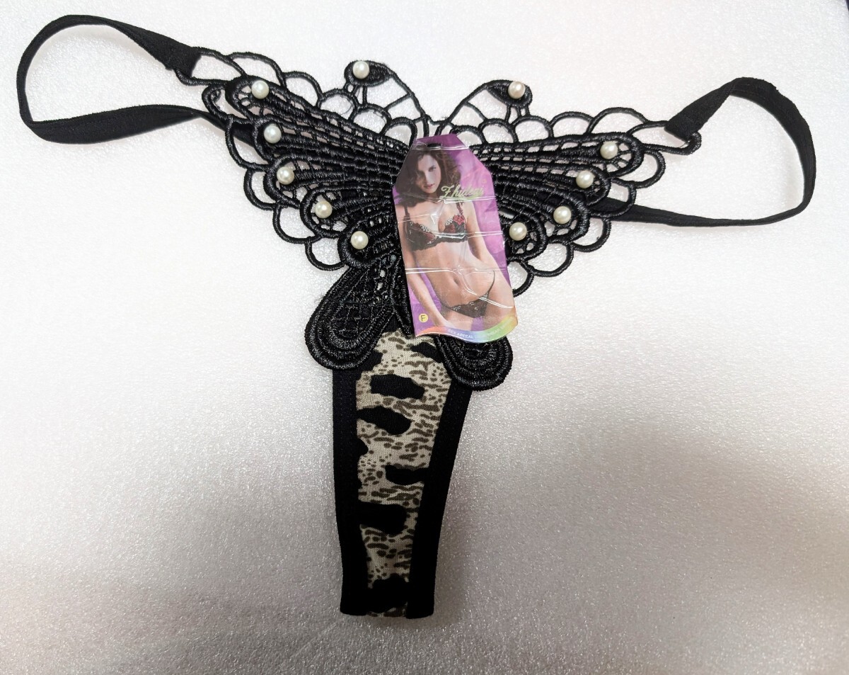 - ヒョウ柄★Tバック★ショーツ★グレー★Vivid★バタフライ★セクシーショーツ★レース★