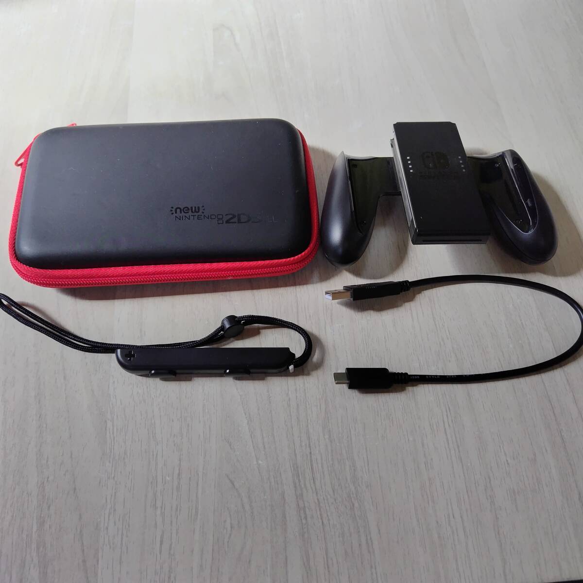 > ☆スリムハードポーチ for Newニンテンドー2DS LL ブラック×レッド Joy-Conグリップ 等 何本でも同梱可☆