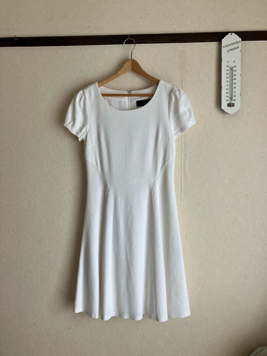 - 【untitled アンタイトル】膝丈ワンピース★ホワイト★サイズ1★ワールド★半袖★裏地あり★匿名発送