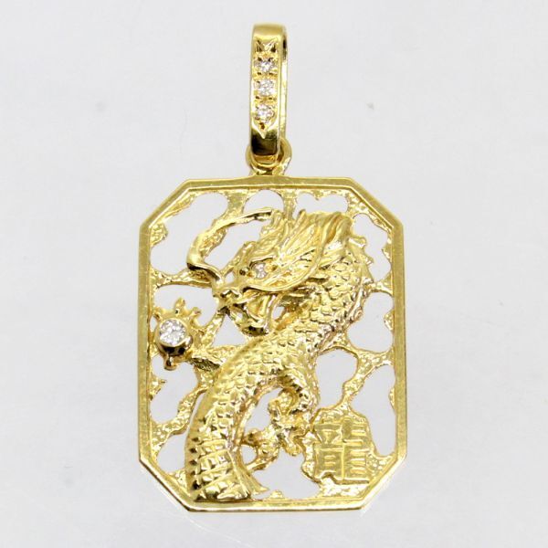 - ◎中古美品◎18金 ダイヤ 0.08ct 龍デザイン ペンダント