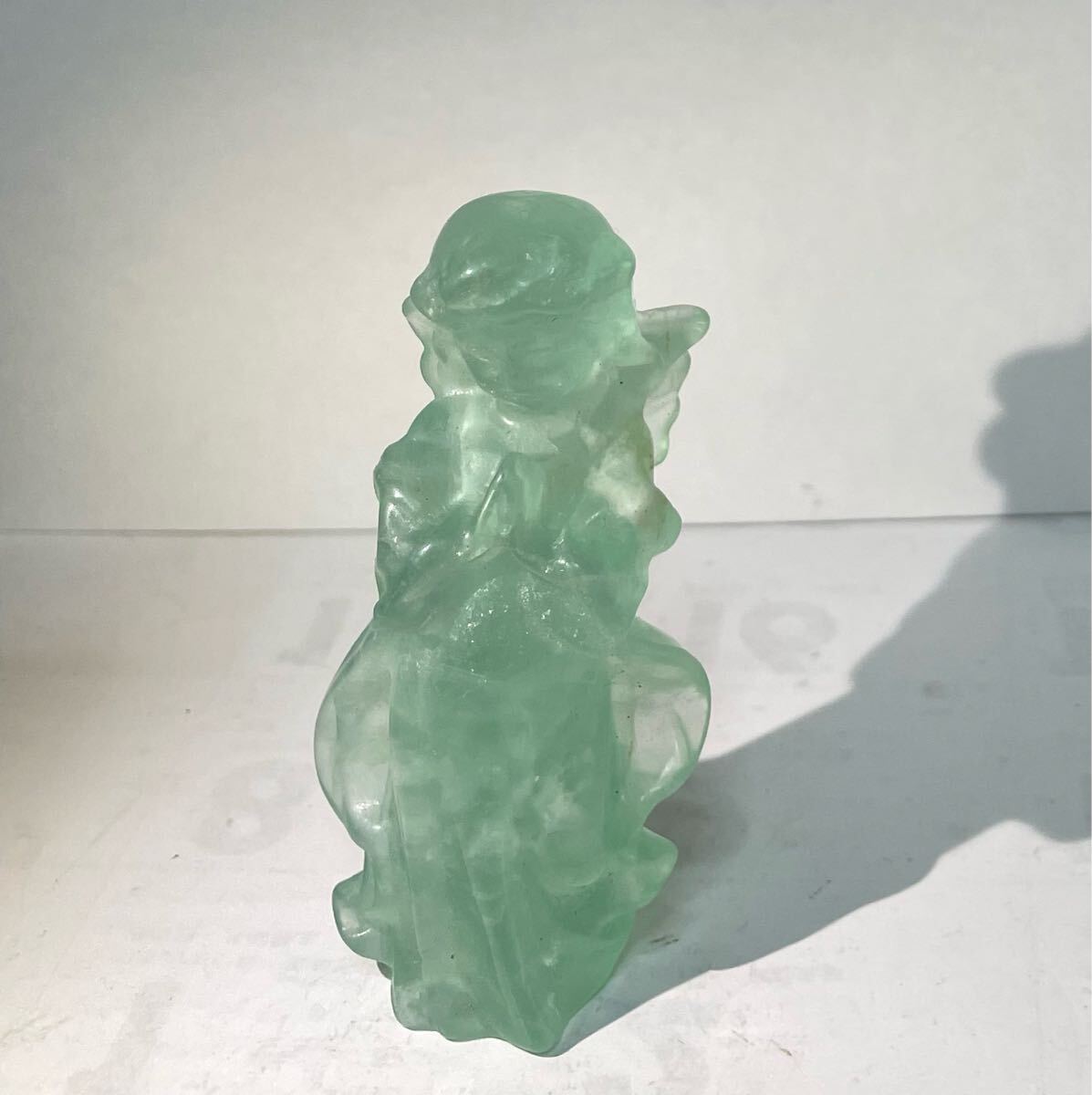 - フローライトのエンジェル 天使様 002 マリア様 天然石彫刻 パワーストーン お守 グリーン 魔除 お守