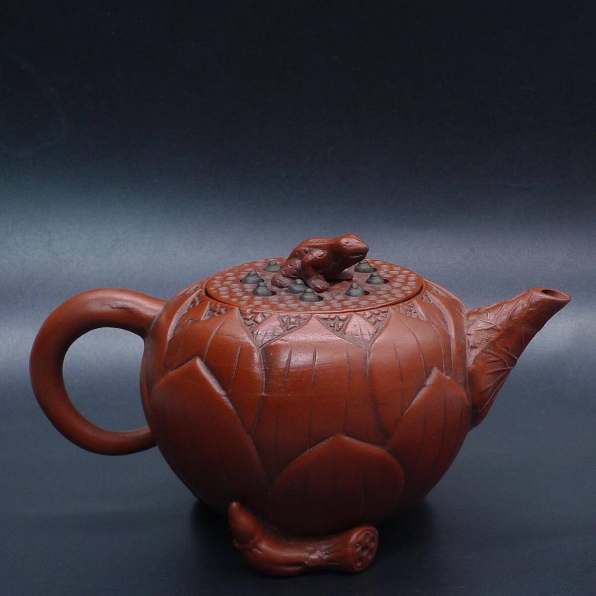 - 中国 時代物 蛙鈕蓮形茶壺 宜興紫砂 常滑 朱泥急須 煎茶道具 古茶道具 古美味 古董品 時代物 検(昭和レトロ