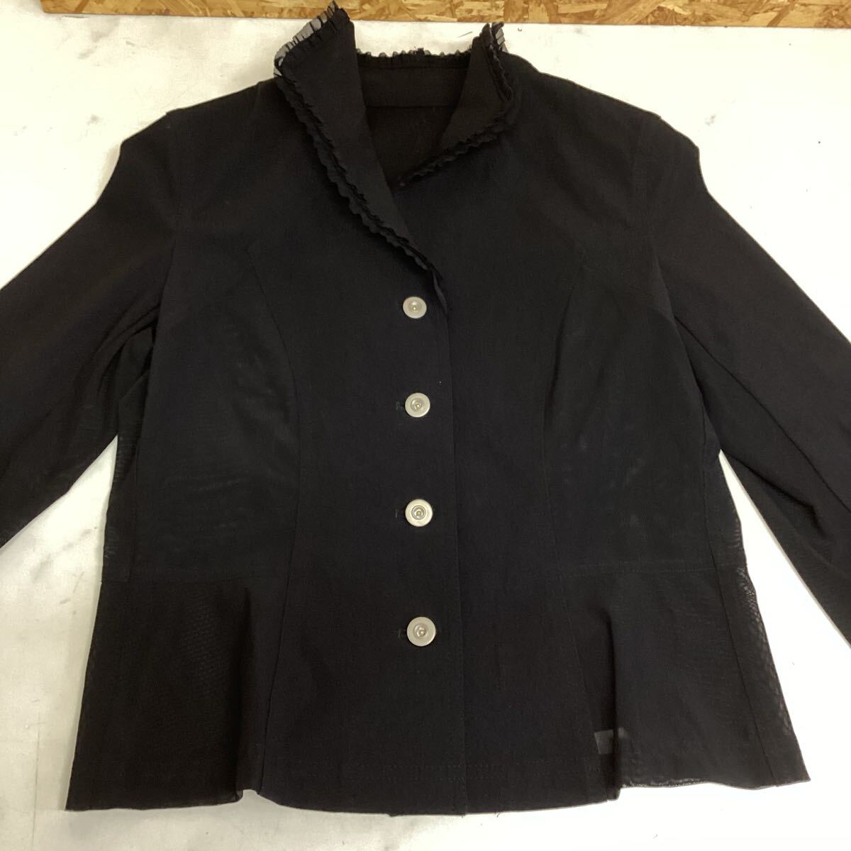 - フリル付き黒ジャケット レディース 薄手 ジャケット 黒 サイズ11 (な97