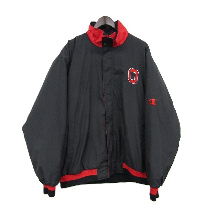 > サイズ M champion ナイロン 中綿 ジャケット OHIOSTATE オハイオ大学 ブラック ワッペン チャンピオン 古着 ビンテージ 5M0701