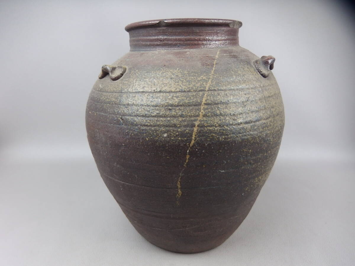 - 【骨董・茶道具】★古い 備前焼 古備前 窯印有★★三耳壷 黄胡麻 gj007ub.7 魯山人? 花生 花道 華道