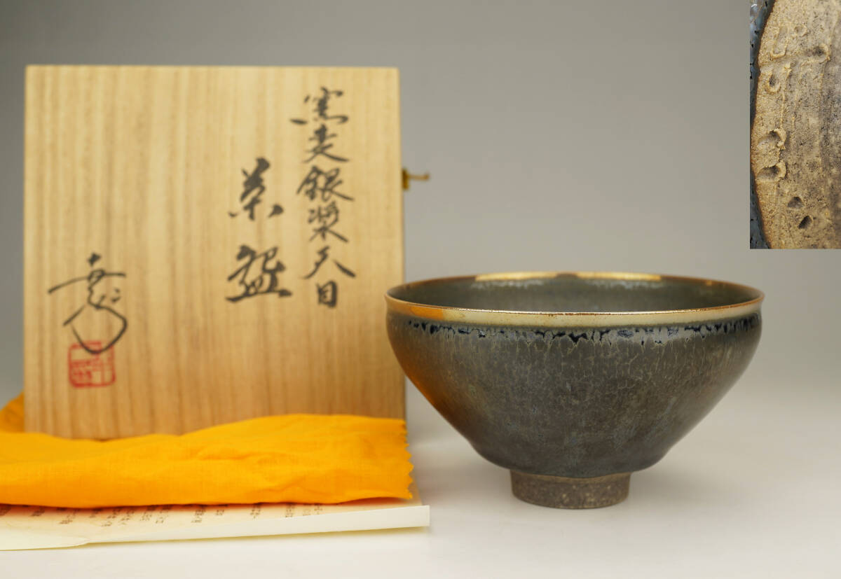 - 鳳】美品 鎌田 幸二 作 窯変銀漿 天目 茶碗 共箱 255-6検:清水卯一 香道具 油滴 鉄瓶 九谷 薩摩 常滑焼
