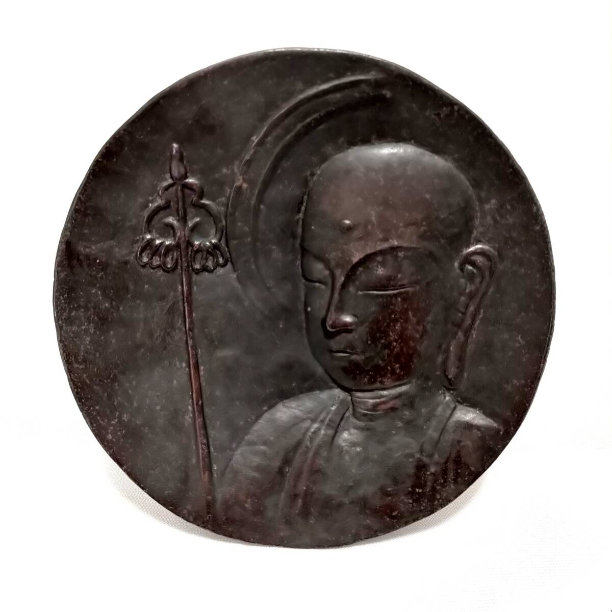 - 〇カ299 本尊延命地蔵尊 延命山地福院 鉄皿 レリーフ 壁掛け 仏具 宗教 直径20.5cm 金属