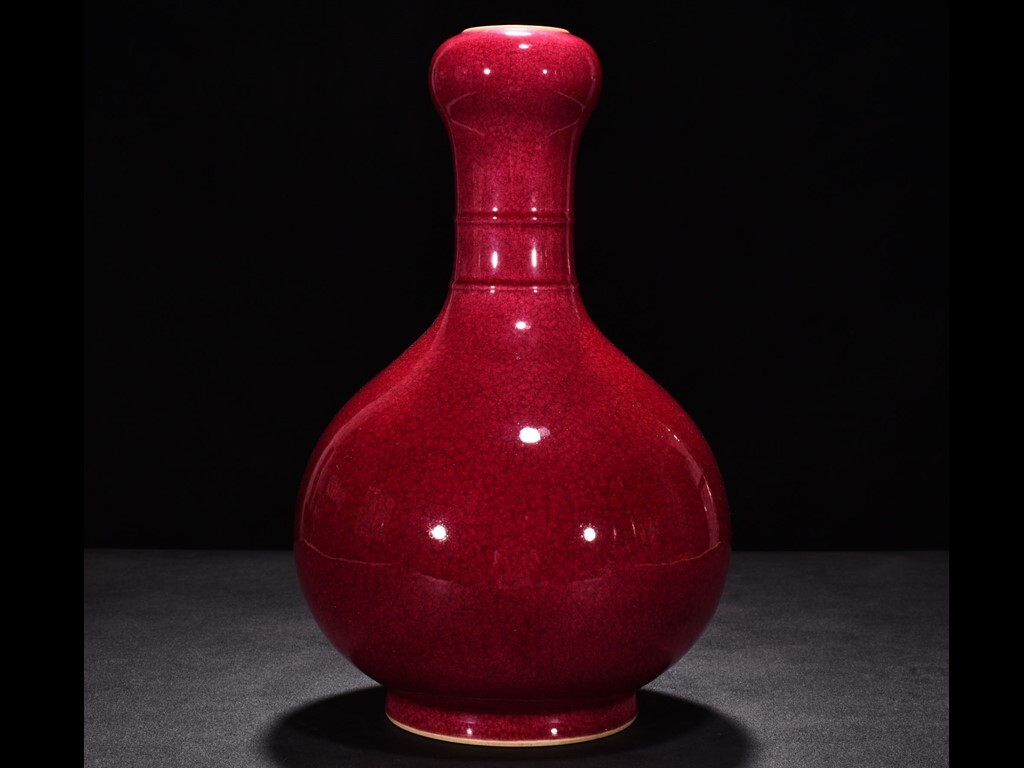 - TA247■中国古玩 唐物 清雍正年製 款 紅寶石紅釉蒜頭瓶 極上品■