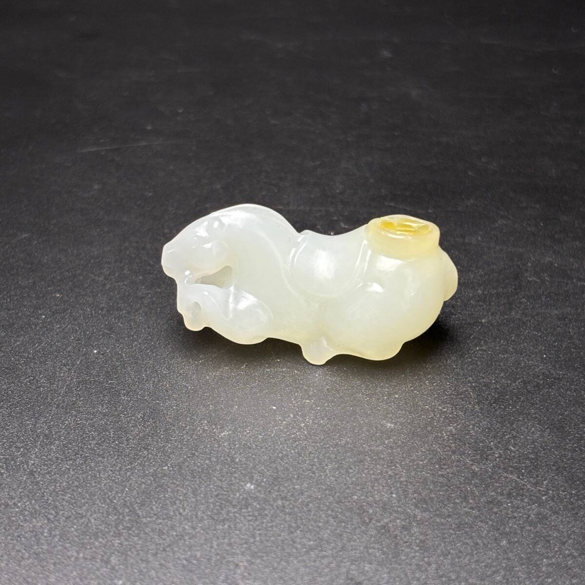- ▽鴻▽ 和田玉製 細密彫 玉馬 置物 賞物 古賞物 中国古玩 中国古美術